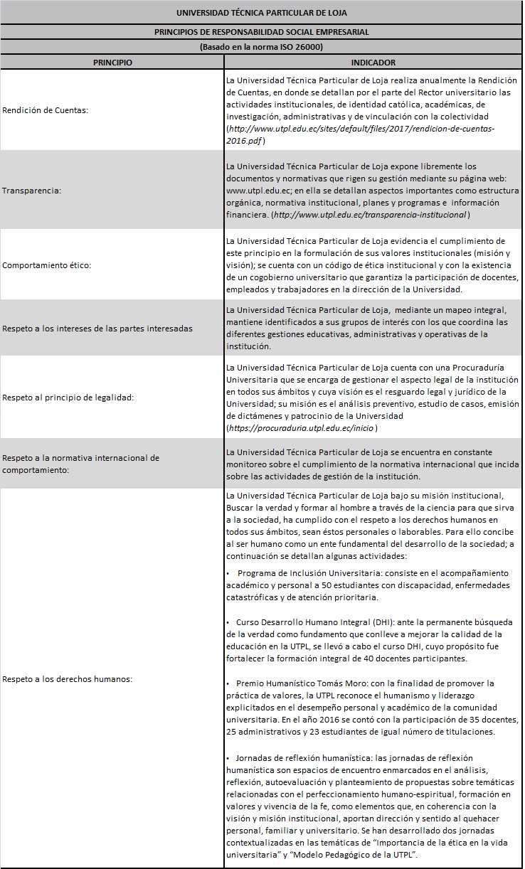 - Tabla 1. Principios e indicadores de Responsabilidad Social