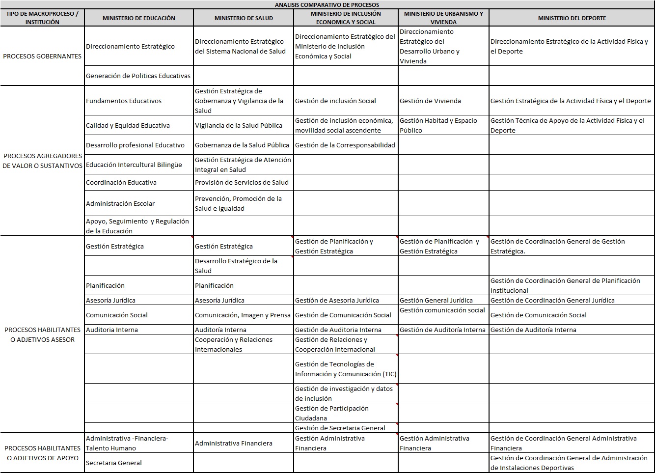 - Tabla 1. Análisis comparativo de los macroprocesos de la cadena de valor