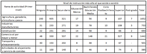 - Tabla 1. Rama de actividad de acuerdo al área urbana y rural