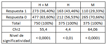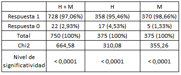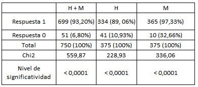 - Tabla 1. Respuestas positivas y negativas de Cuadros jerárquicos