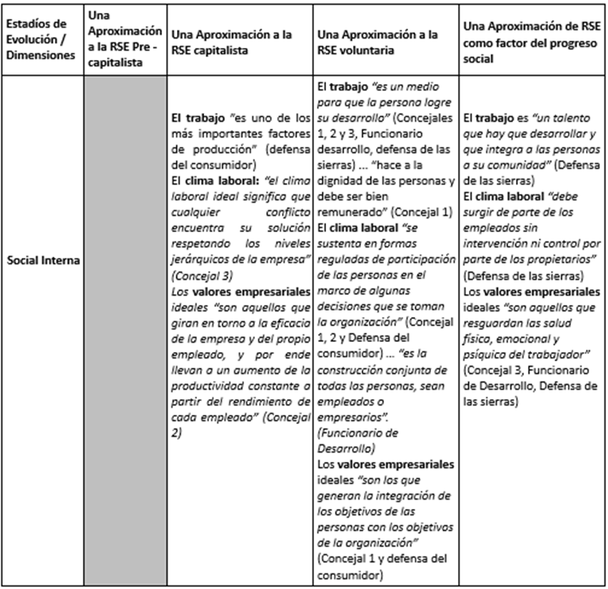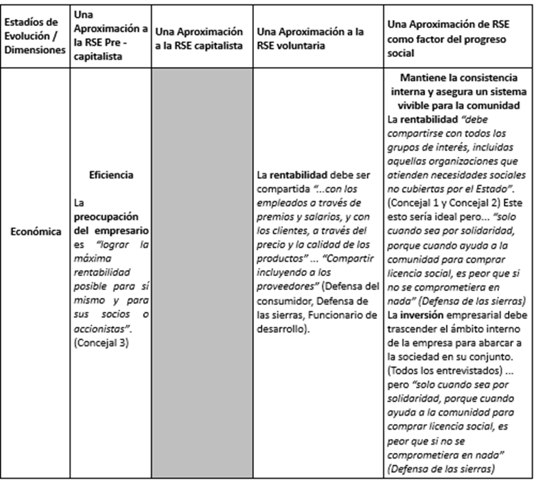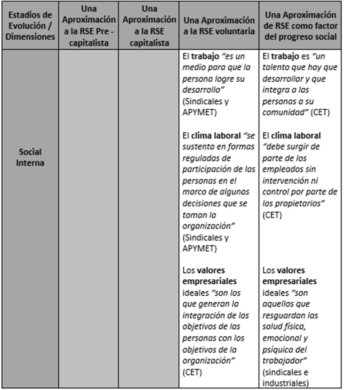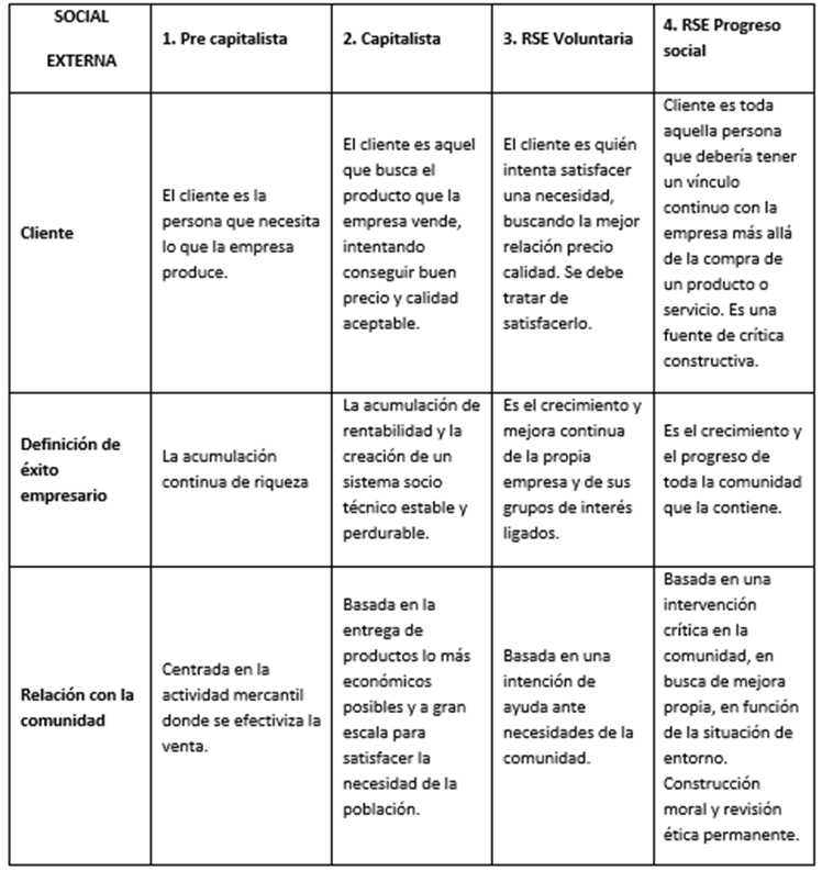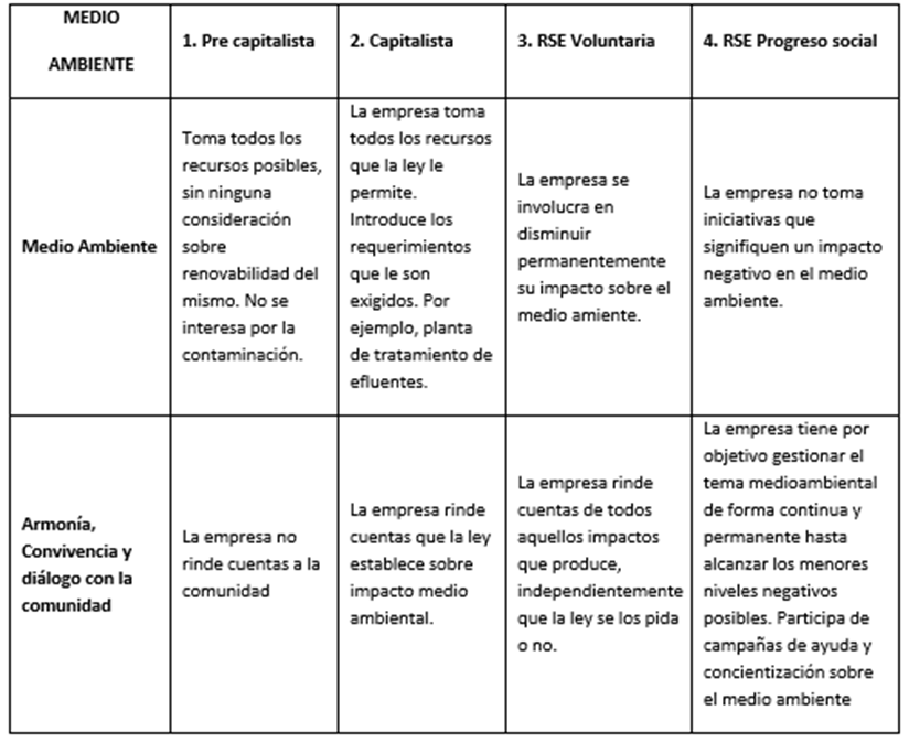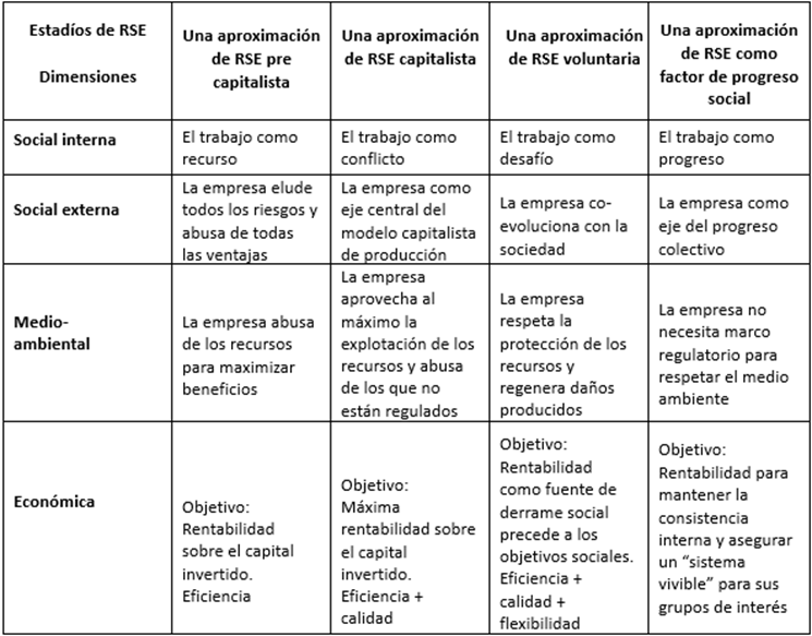 - Tabla 1. Las perspectivas del discurso RSE en cada estadio evolutivo